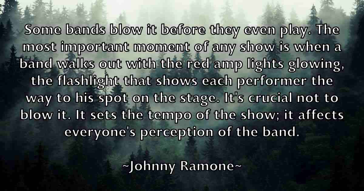 Some bands blow it before they even play. The most important moment of any show is when a band walks out with the red amp lights glowing, the flashlight that shows each performer the way to his spot on the stage. It's crucial not to blow it. It sets the tempo of the show; it affects everyone's perception of the band.