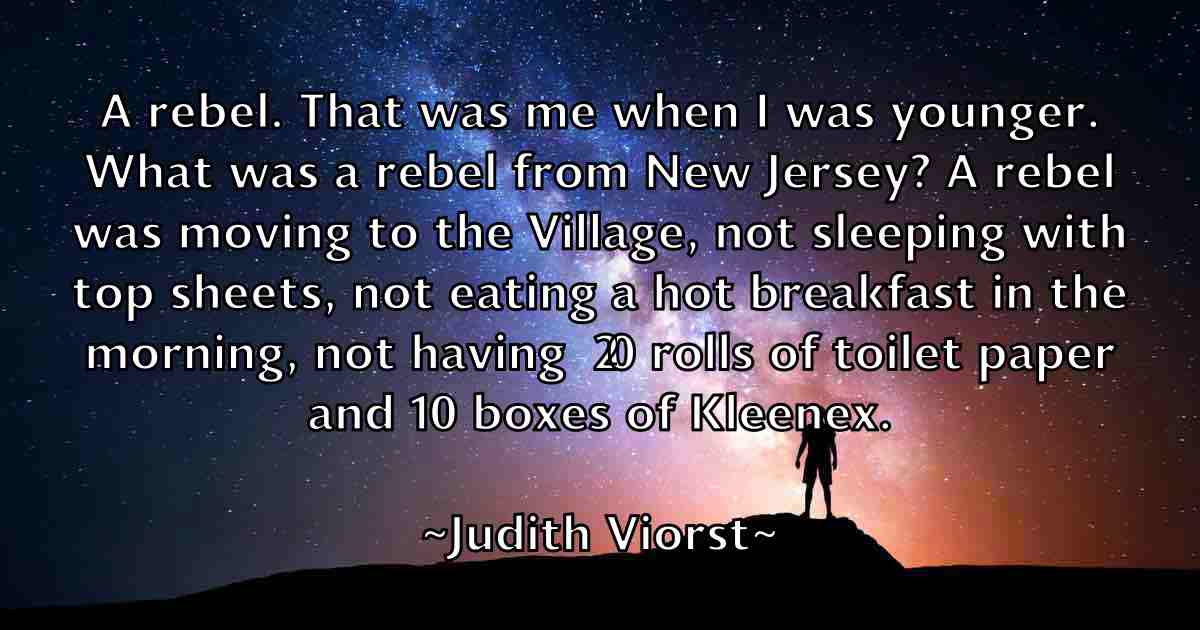 A rebel. That was me when I was younger. What was a rebel from New Jersey? A rebel was moving to the Village, not sleeping with top sheets, not eating a hot breakfast in the morning, not having 20 rolls of toilet paper and 10 boxes of Kleenex.