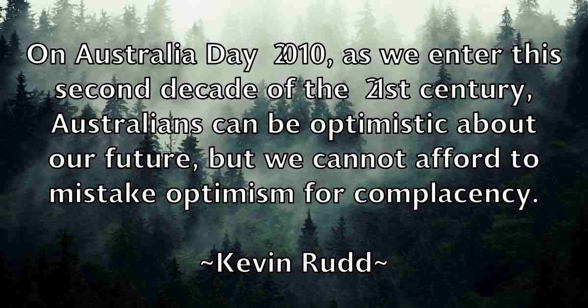 On Australia Day 2010, as we enter this second decade of the 21st century, Australians can be optimistic about our future, but we cannot afford to mistake optimism for complacency.