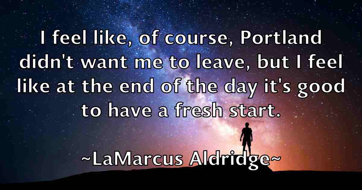 I feel like, of course, Portland didn't want me to leave, but I feel like at the end of the day it's good to have a fresh start.