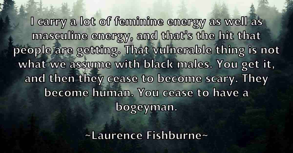 I carry a lot of feminine energy as well as masculine energy, and that's the hit that people are getting. That vulnerable thing is not what we assume with black males. You get it, and then they cease to become scary. They become human. You cease to have a bogeyman.
