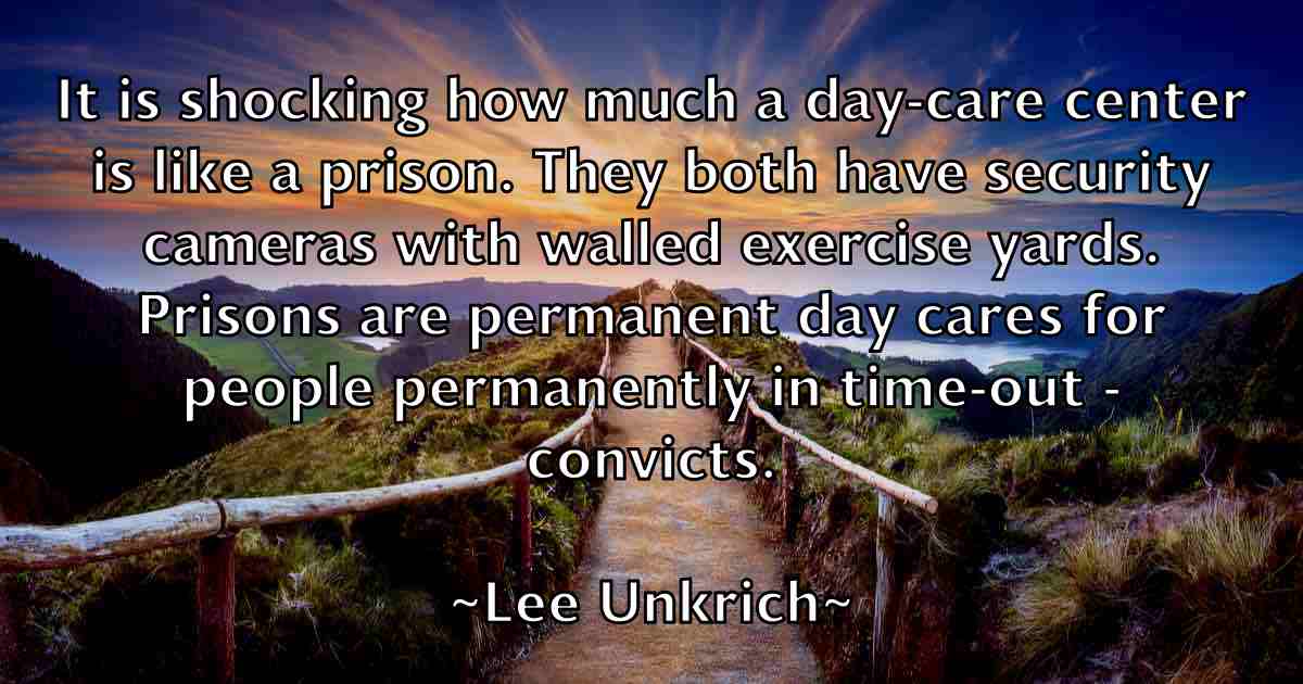 It is shocking how much a day-care center is like a prison. They both have security cameras with walled exercise yards. Prisons are permanent day cares for people permanently in time-out - convicts.