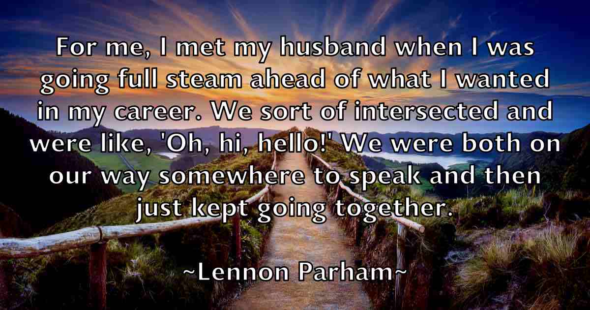 For me, I met my husband when I was going full steam ahead of what I wanted in my career. We sort of intersected and were like, 'Oh, hi, hello!' We were both on our way somewhere to speak and then just kept going together.