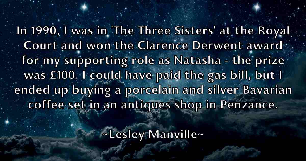 In 1990, I was in 'The Three Sisters' at the Royal Court and won the Clarence Derwent award for my supporting role as Natasha - the prize was £100. I could have paid the gas bill, but I ended up buying a porcelain and silver Bavarian coffee set in an antiques shop in Penzance.