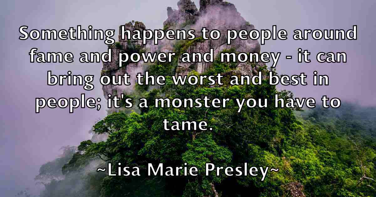 Something happens to people around fame and power and money - it can bring out the worst and best in people; it's a monster you have to tame.