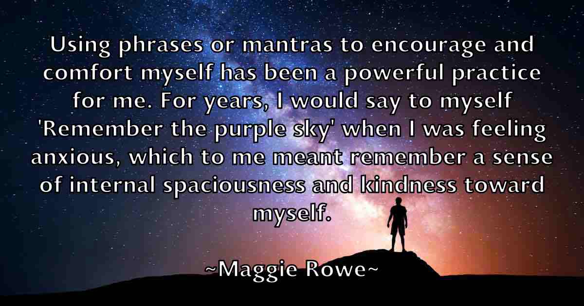 Using phrases or mantras to encourage and comfort myself has been a powerful practice for me. For years, I would say to myself 'Remember the purple sky' when I was feeling anxious, which to me meant remember a sense of internal spaciousness and kindness toward myself.