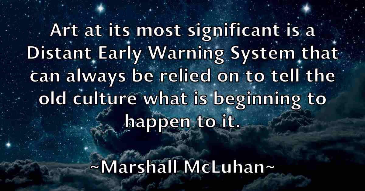 Art at its most significant is a Distant Early Warning System that can always be relied on to tell the old culture what is beginning to happen to it.
