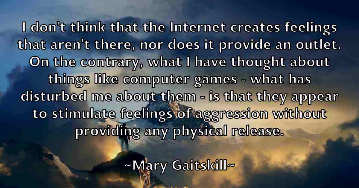 I don't think that the Internet creates feelings that aren't there, nor does it provide an outlet. On the contrary, what I have thought about things like computer games - what has disturbed me about them - is that they appear to stimulate feelings of aggression without providing any physical release.