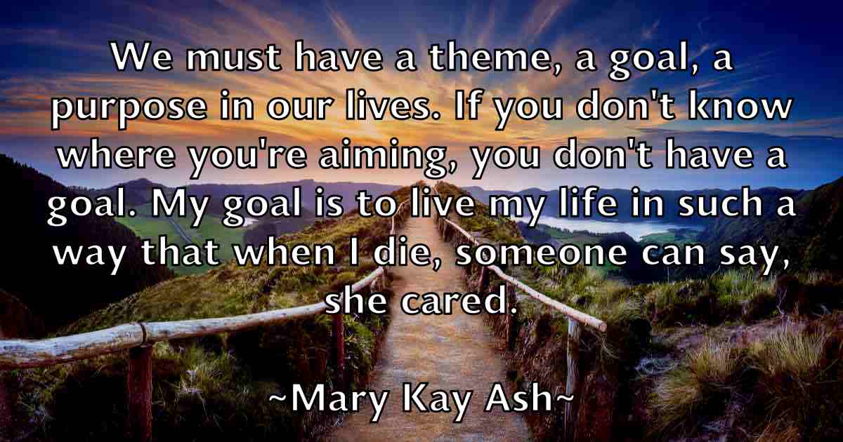 We must have a theme, a goal, a purpose in our lives. If you don't know where you're aiming, you don't have a goal. My goal is to live my life in such a way that when I die, someone can say, she cared.