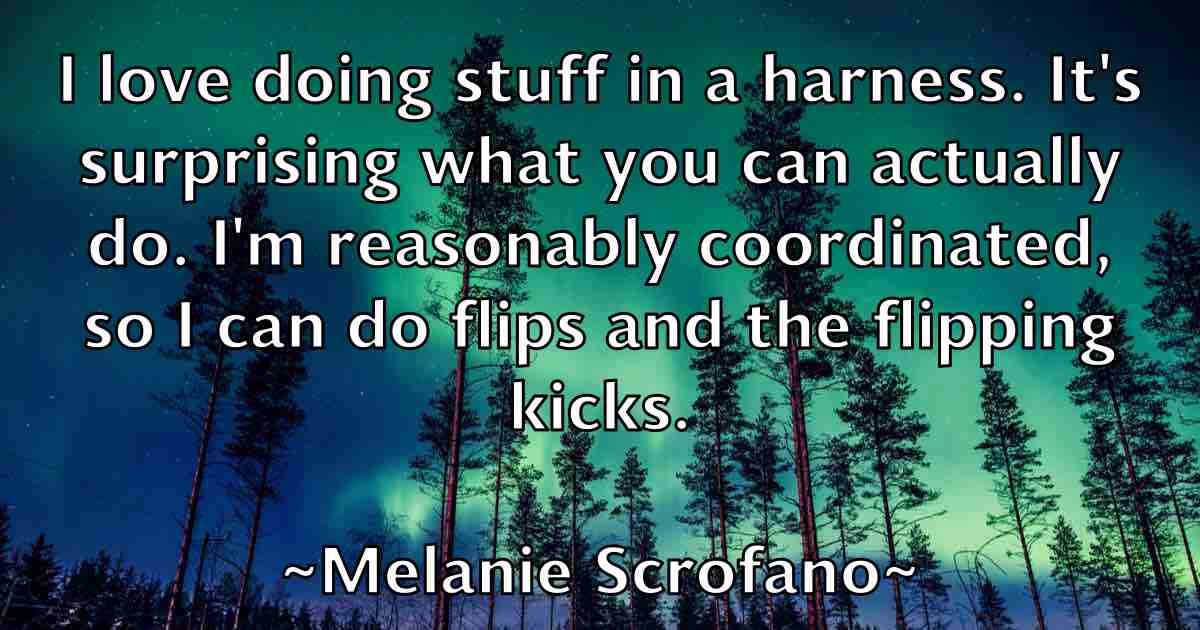 I love doing stuff in a harness. It's surprising what you can actually do. I'm reasonably coordinated, so I can do flips and the flipping kicks.