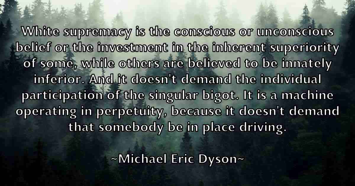 White supremacy is the conscious or unconscious belief or the investment in the inherent superiority of some, while others are believed to be innately inferior. And it doesn't demand the individual participation of the singular bigot. It is a machine operating in perpetuity, because it doesn't demand that somebody be in place driving.