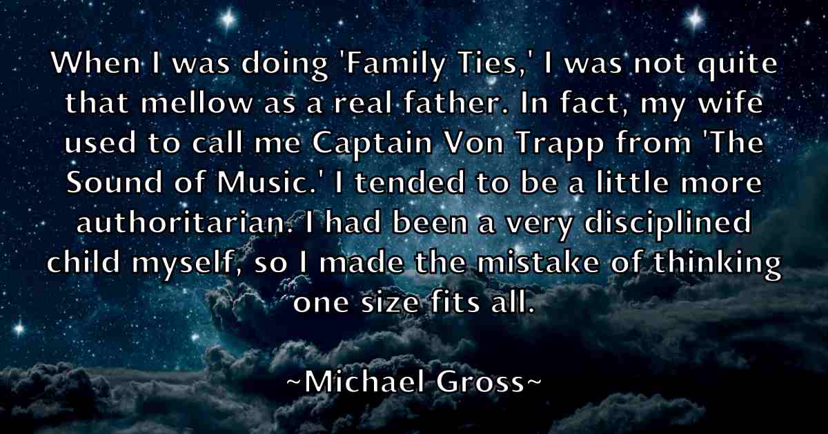 When I was doing 'Family Ties,' I was not quite that mellow as a real father. In fact, my wife used to call me Captain Von Trapp from 'The Sound of Music.' I tended to be a little more authoritarian. I had been a very disciplined child myself, so I made the mistake of thinking one size fits all.