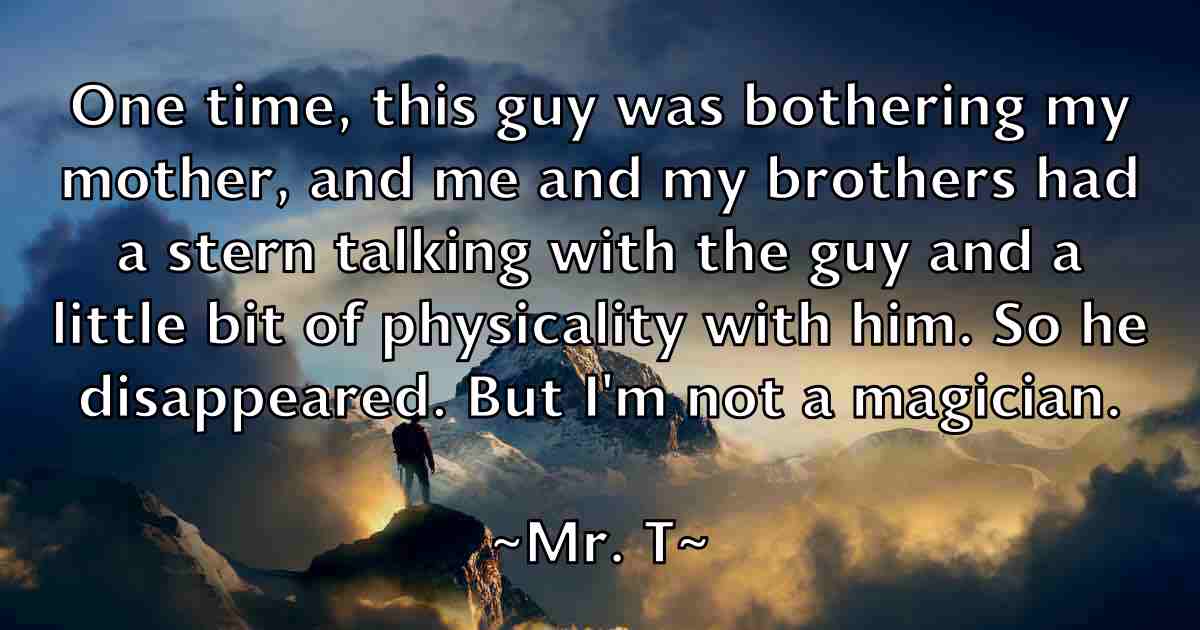 One time, this guy was bothering my mother, and me and my brothers had a stern talking with the guy and a little bit of physicality with him. So he disappeared. But I'm not a magician.