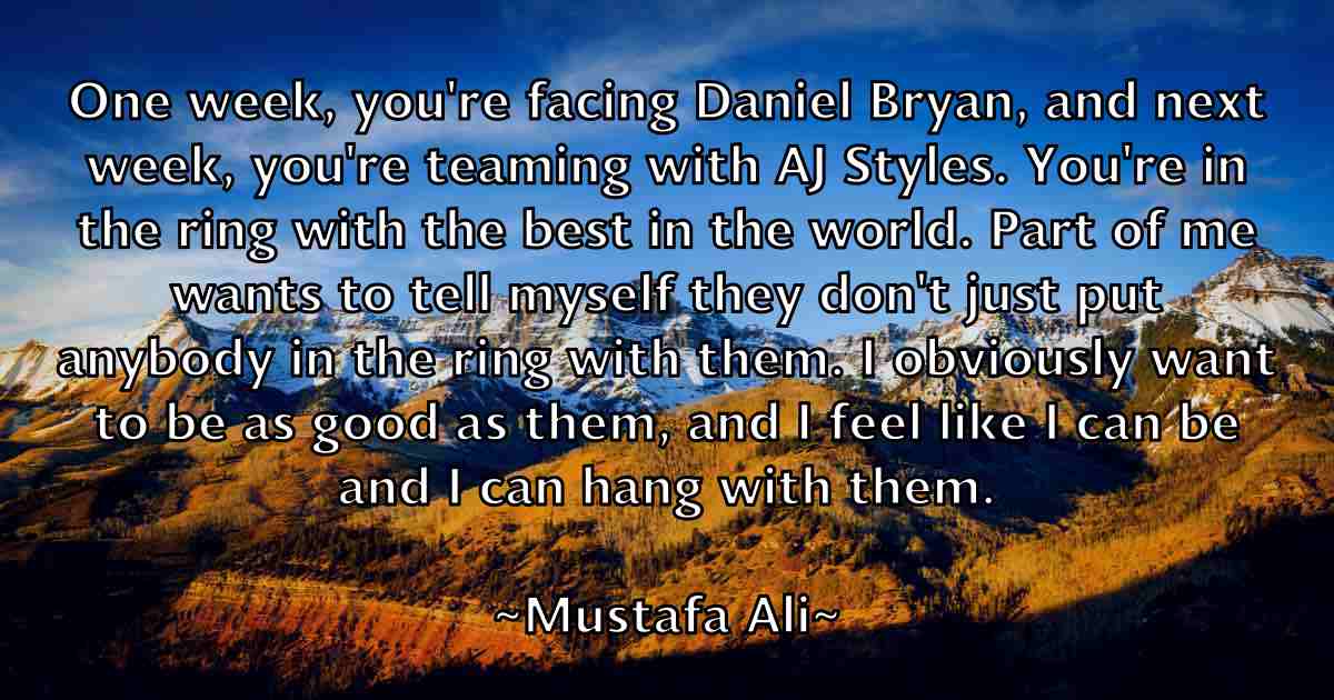 One week, you're facing Daniel Bryan, and next week, you're teaming with AJ Styles. You're in the ring with the best in the world. Part of me wants to tell myself they don't just put anybody in the ring with them. I obviously want to be as good as them, and I feel like I can be and I can hang with them.