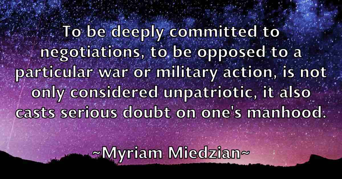 To be deeply committed to negotiations, to be opposed to a particular war or military action, is not only considered unpatriotic, it also casts serious doubt on one's manhood.