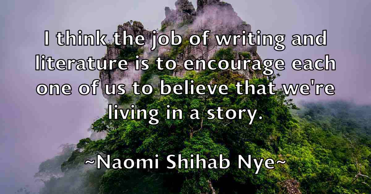 I think the job of writing and literature is to encourage each one of us to believe that we're living in a story.