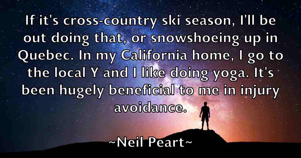 If it's cross-country ski season, I'll be out doing that, or snowshoeing up in Quebec. In my California home, I go to the local Y and I like doing yoga. It's been hugely beneficial to me in injury avoidance.