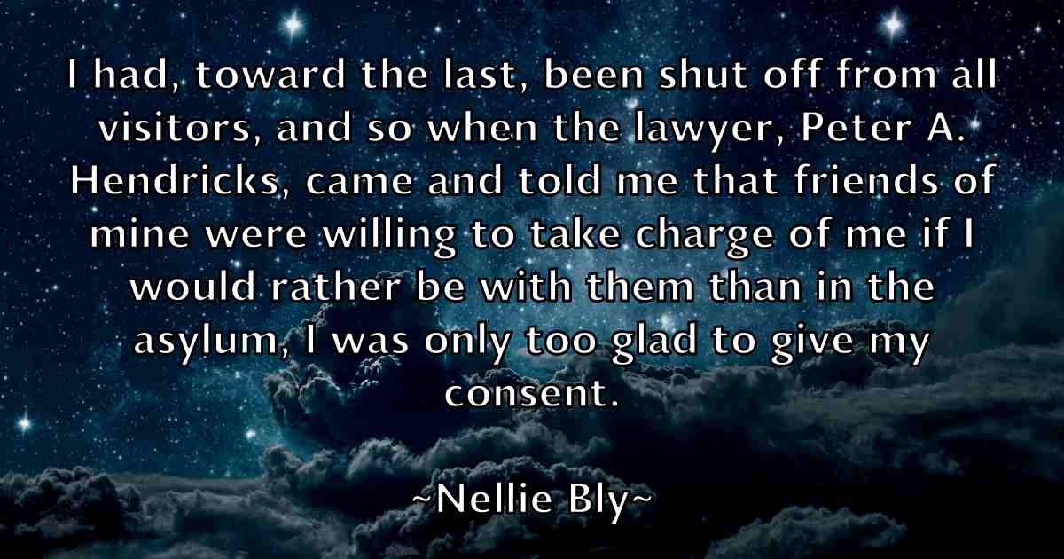 I had, toward the last, been shut off from all visitors, and so when the lawyer, Peter A. Hendricks, came and told me that friends of mine were willing to take charge of me if I would rather be with them than in the asylum, I was only too glad to give my consent.