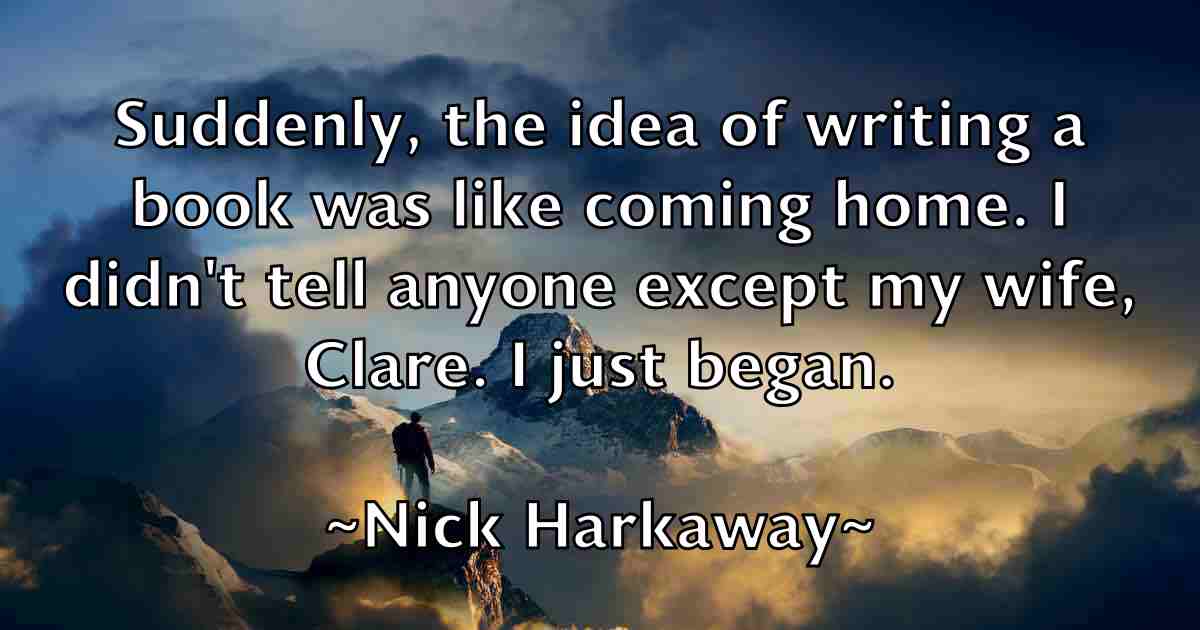Suddenly, the idea of writing a book was like coming home. I didn't tell anyone except my wife, Clare. I just began.