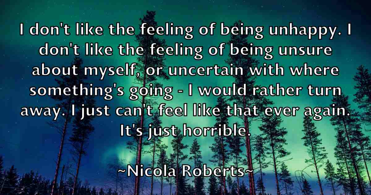 I don't like the feeling of being unhappy. I don't like the feeling of being unsure about myself, or uncertain with where something's going - I would rather turn away. I just can't feel like that ever again. It's just horrible.