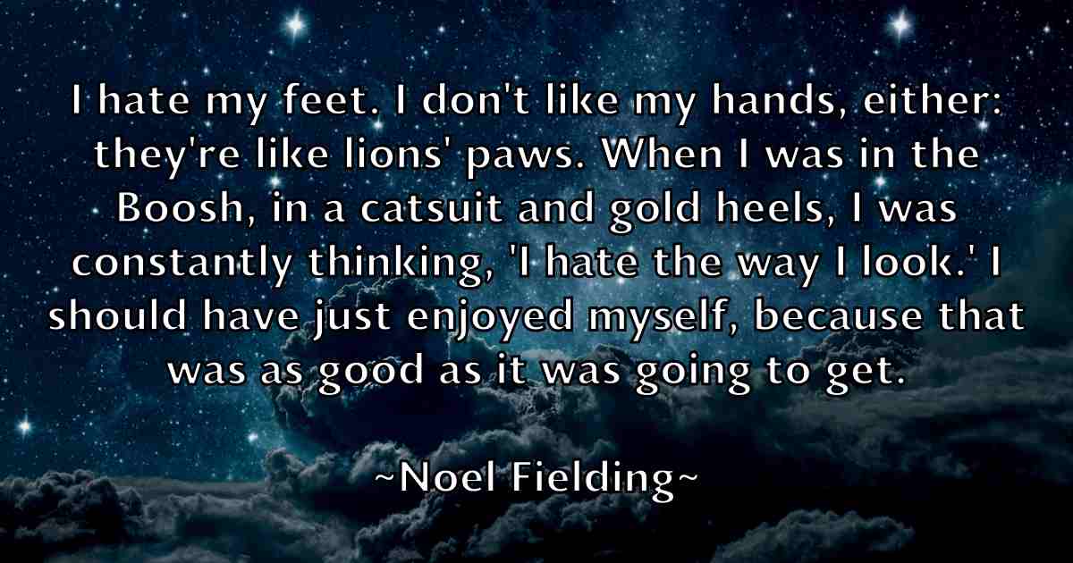 I hate my feet. I don't like my hands, either: they're like lions' paws. When I was in the Boosh, in a catsuit and gold heels, I was constantly thinking, 'I hate the way I look.' I should have just enjoyed myself, because that was as good as it was going to get.