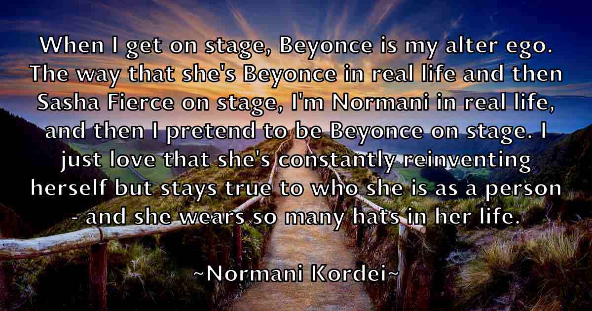 When I get on stage, Beyonce is my alter ego. The way that she's Beyonce in real life and then Sasha Fierce on stage, I'm Normani in real life, and then I pretend to be Beyonce on stage. I just love that she's constantly reinventing herself but stays true to who she is as a person - and she wears so many hats in her life.