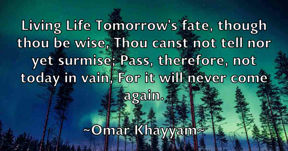 Living Life Tomorrow's fate, though thou be wise, Thou canst not tell nor yet surmise; Pass, therefore, not today in vain, For it will never come again.