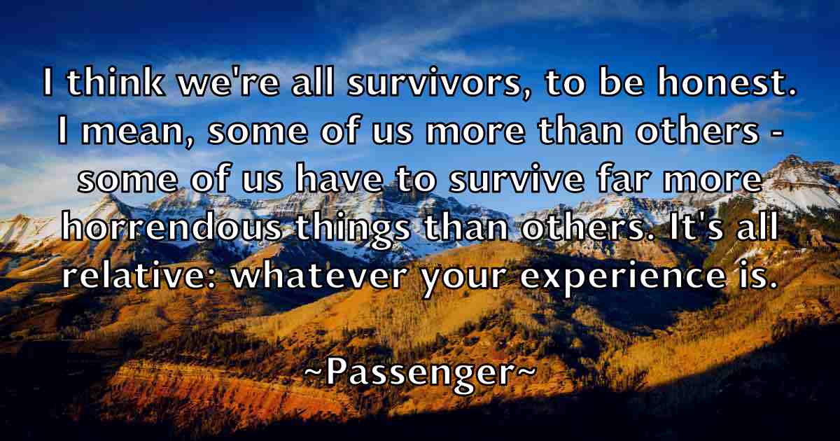 I think we're all survivors, to be honest. I mean, some of us more than others - some of us have to survive far more horrendous things than others. It's all relative: whatever your experience is.