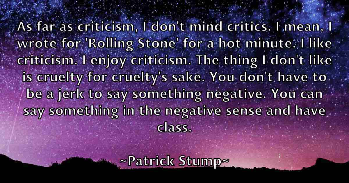 As far as criticism, I don't mind critics. I mean, I wrote for 'Rolling Stone' for a hot minute. I like criticism. I enjoy criticism. The thing I don't like is cruelty for cruelty's sake. You don't have to be a jerk to say something negative. You can say something in the negative sense and have class.