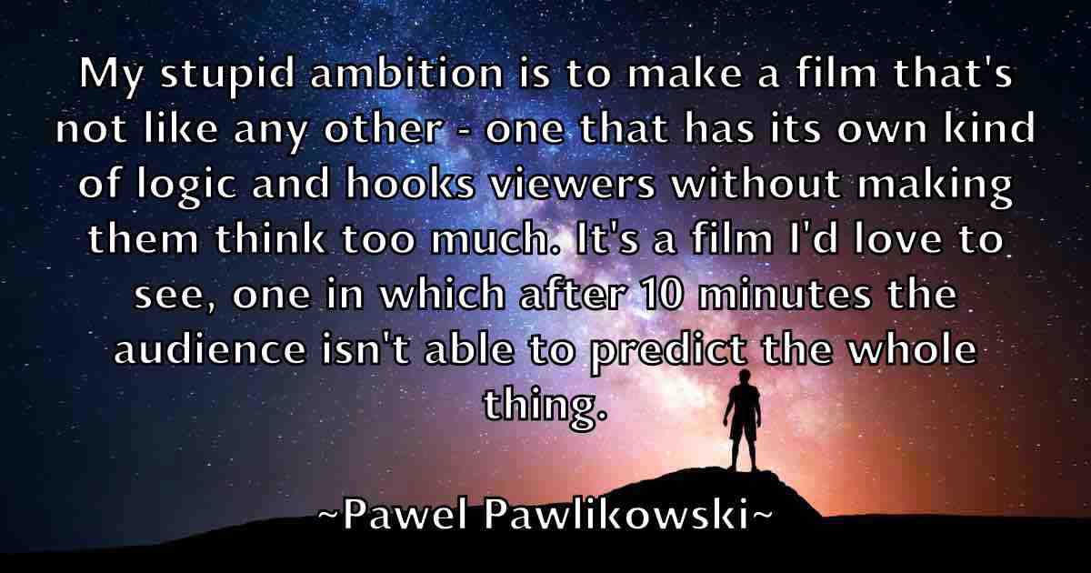 My stupid ambition is to make a film that's not like any other - one that has its own kind of logic and hooks viewers without making them think too much. It's a film I'd love to see, one in which after 10 minutes the audience isn't able to predict the whole thing.