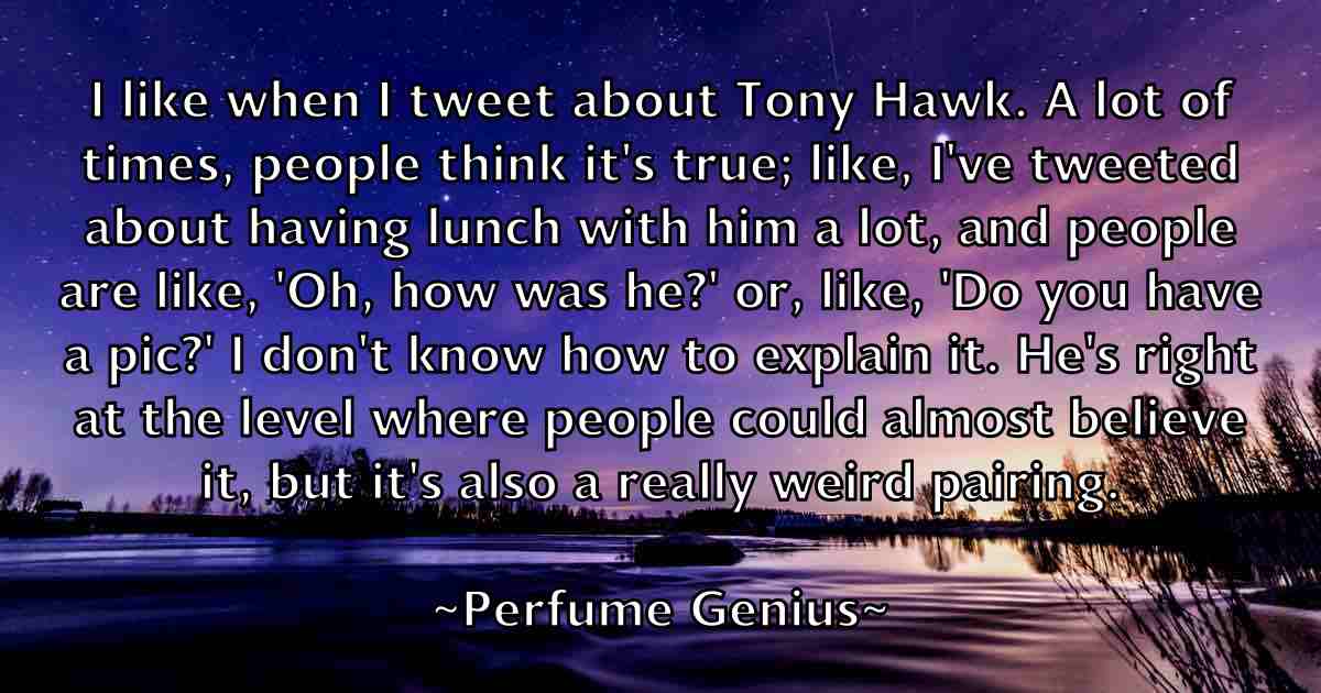 I like when I tweet about Tony Hawk. A lot of times, people think it's true; like, I've tweeted about having lunch with him a lot, and people are like, 'Oh, how was he?' or, like, 'Do you have a pic?' I don't know how to explain it. He's right at the level where people could almost believe it, but it's also a really weird pairing.