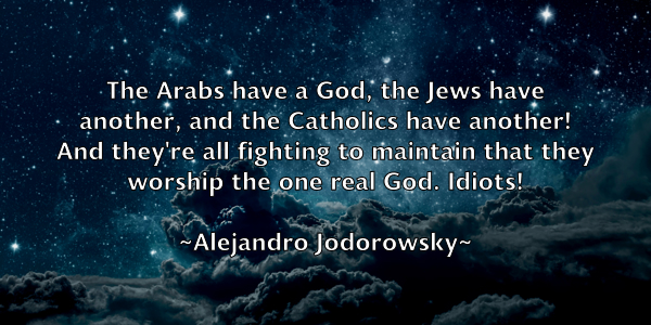 The Arabs have a God, the Jews have another, and the Catholics have another! And they're all fighting to maintain that they worship the one real God. Idiots!