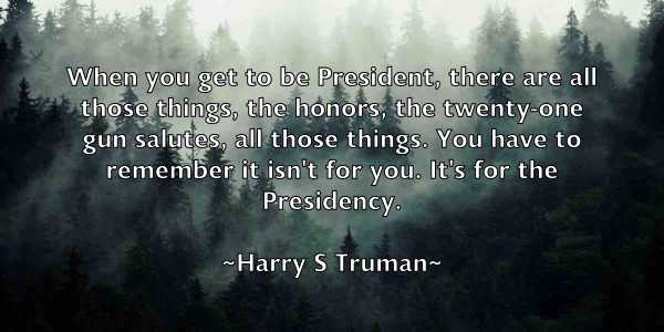 When you get to be President, there are all those things, the honors, the twenty-one gun salutes, all those things. You have to remember it isn't for you. It's for the Presidency.
