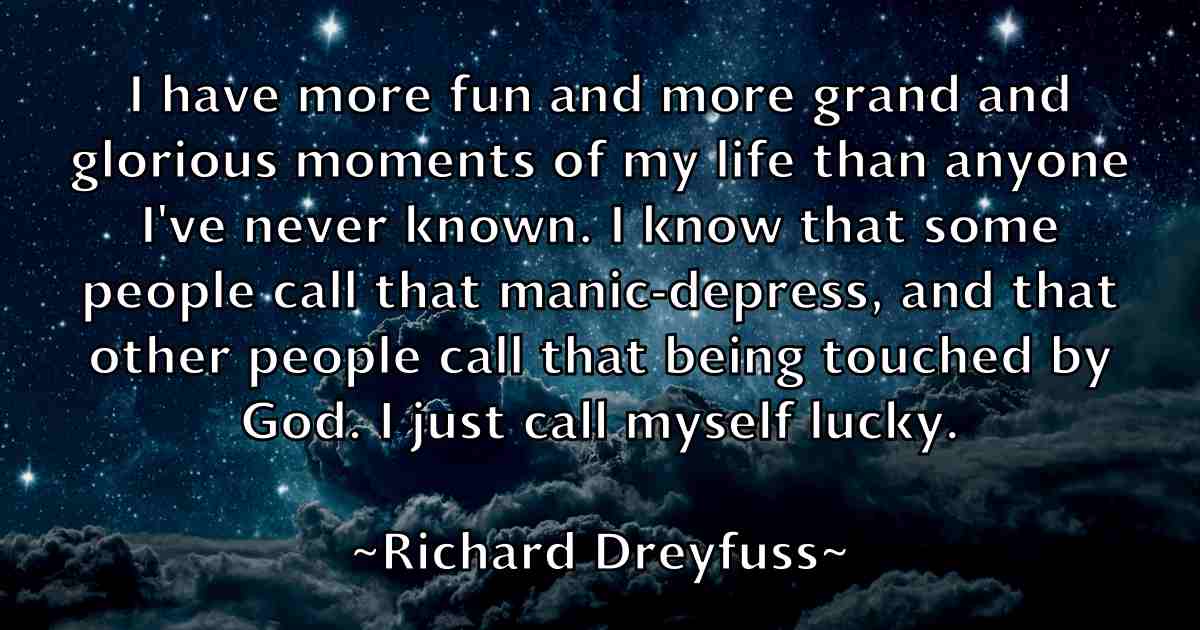 I have more fun and more grand and glorious moments of my life than anyone I've never known. I know that some people call that manic-depress, and that other people call that being touched by God. I just call myself lucky.