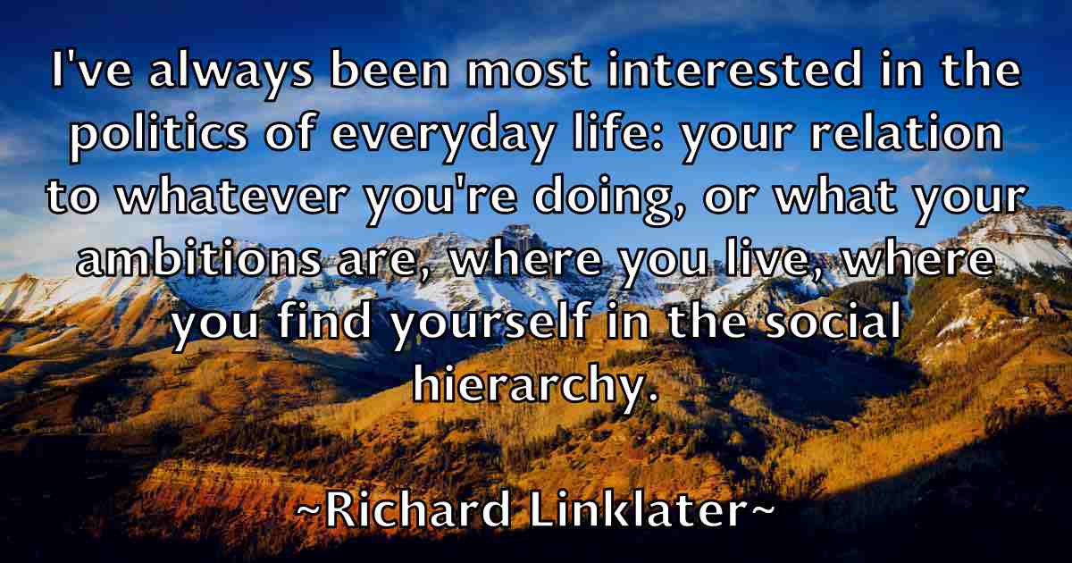I've always been most interested in the politics of everyday life: your relation to whatever you're doing, or what your ambitions are, where you live, where you find yourself in the social hierarchy.