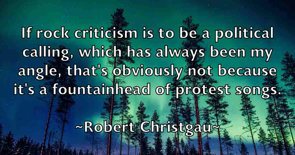 If rock criticism is to be a political calling, which has always been my angle, that's obviously not because it's a fountainhead of protest songs.