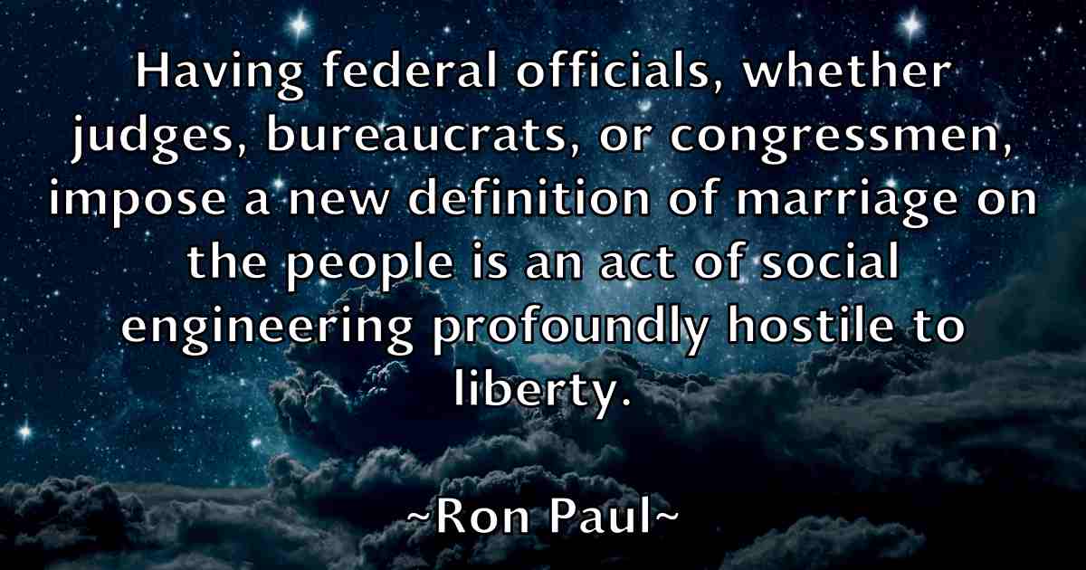 Having federal officials, whether judges, bureaucrats, or congressmen, impose a new definition of marriage on the people is an act of social engineering profoundly hostile to liberty.