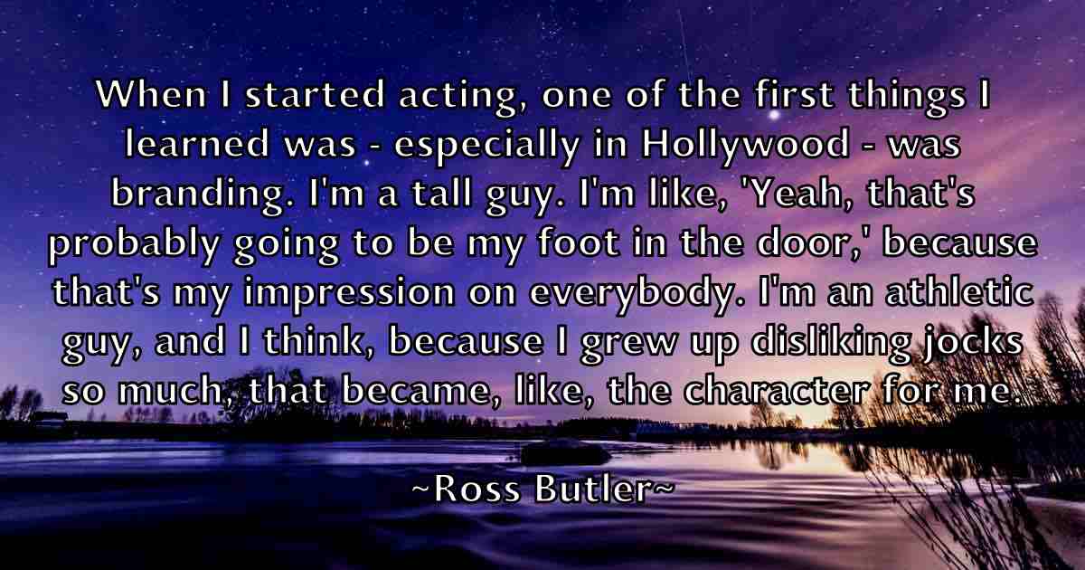 When I started acting, one of the first things I learned was - especially in Hollywood - was branding. I'm a tall guy. I'm like, 'Yeah, that's probably going to be my foot in the door,' because that's my impression on everybody. I'm an athletic guy, and I think, because I grew up disliking jocks so much, that became, like, the character for me.