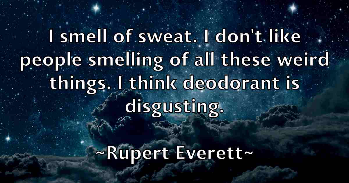 I smell of sweat. I don't like people smelling of all these weird things. I think deodorant is disgusting.