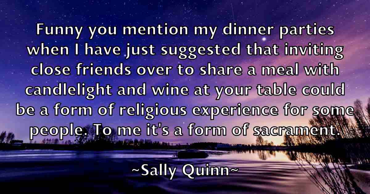 Funny you mention my dinner parties when I have just suggested that inviting close friends over to share a meal with candlelight and wine at your table could be a form of religious experience for some people. To me it's a form of sacrament.
