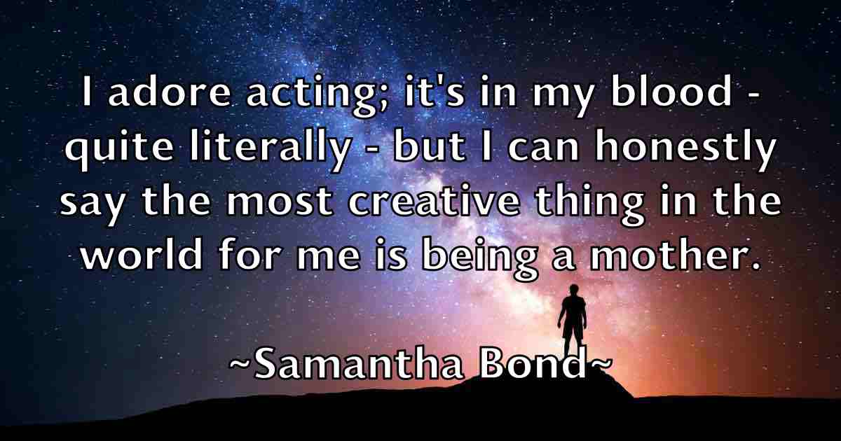 I adore acting; it's in my blood - quite literally - but I can honestly say the most creative thing in the world for me is being a mother.