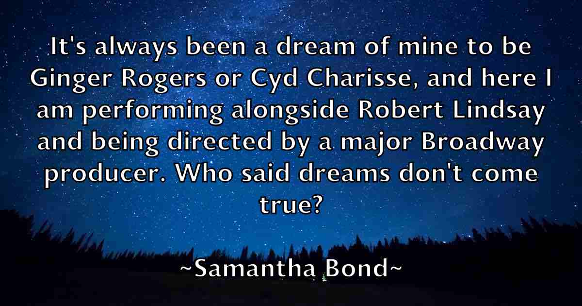 It's always been a dream of mine to be Ginger Rogers or Cyd Charisse, and here I am performing alongside Robert Lindsay and being directed by a major Broadway producer. Who said dreams don't come true?