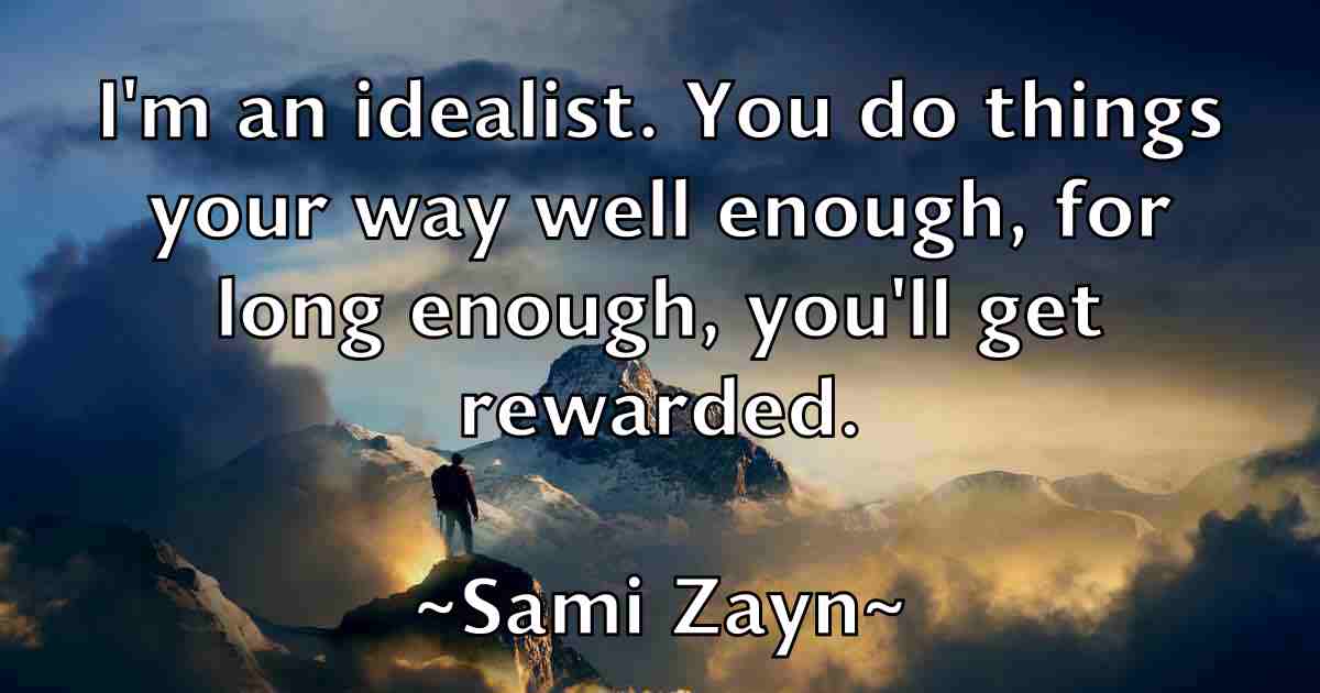 I'm an idealist. You do things your way well enough, for long enough, you'll get rewarded.