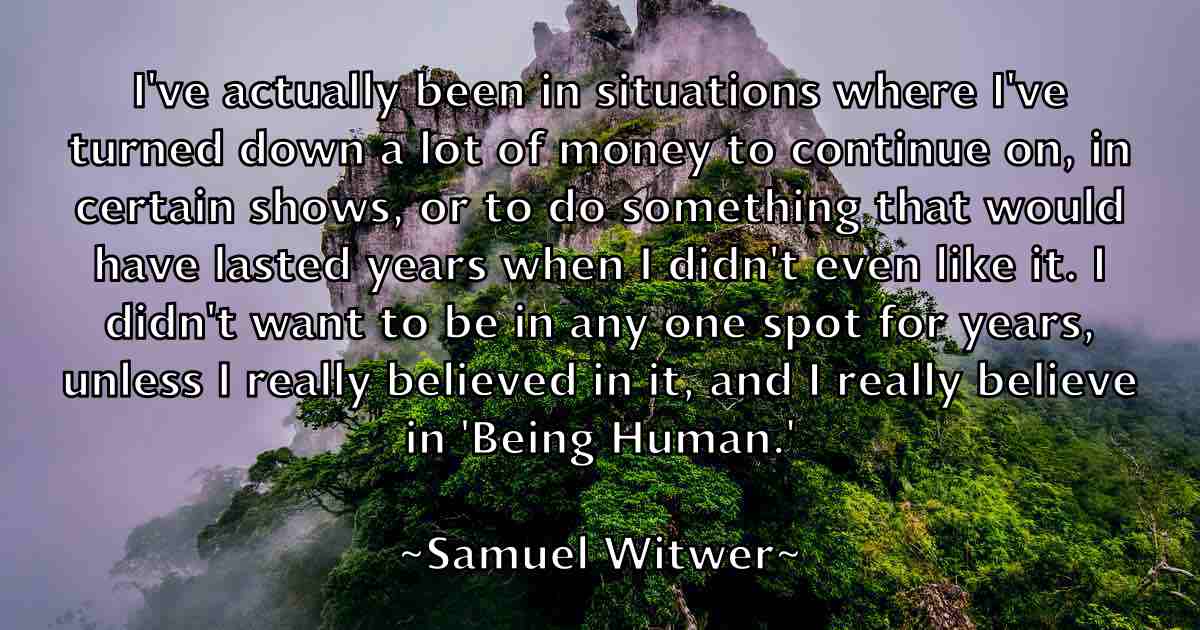 I've actually been in situations where I've turned down a lot of money to continue on, in certain shows, or to do something that would have lasted years when I didn't even like it. I didn't want to be in any one spot for years, unless I really believed in it, and I really believe in 'Being Human.'