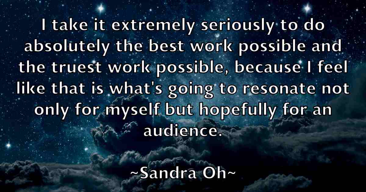 I take it extremely seriously to do absolutely the best work possible and the truest work possible, because I feel like that is what's going to resonate not only for myself but hopefully for an audience.