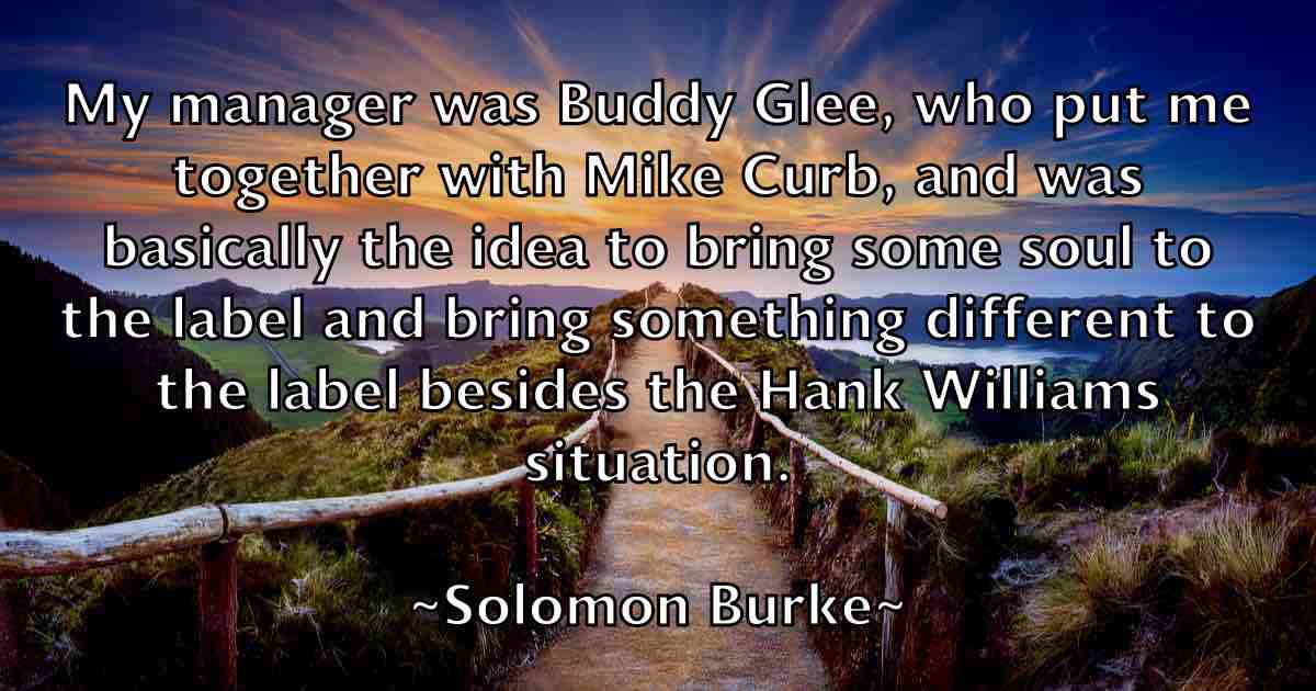My manager was Buddy Glee, who put me together with Mike Curb, and was basically the idea to bring some soul to the label and bring something different to the label besides the Hank Williams situation.