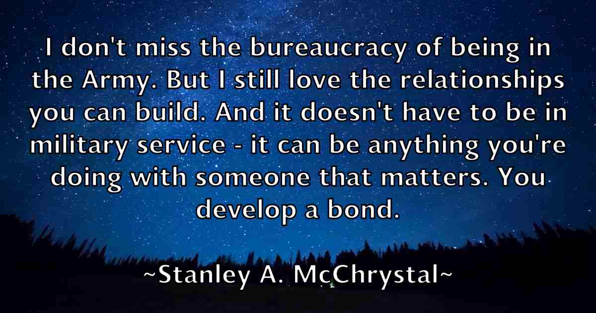 I don't miss the bureaucracy of being in the Army. But I still love the relationships you can build. And it doesn't have to be in military service - it can be anything you're doing with someone that matters. You develop a bond.