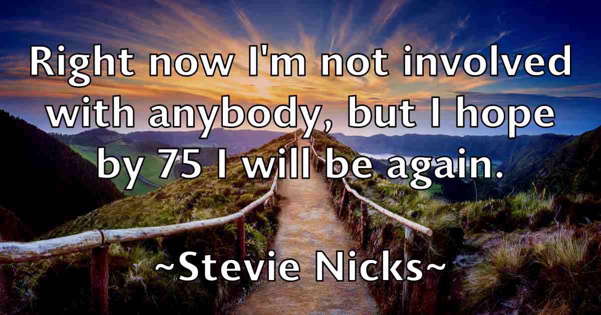 Right now I'm not involved with anybody, but I hope by 75 I will be again.