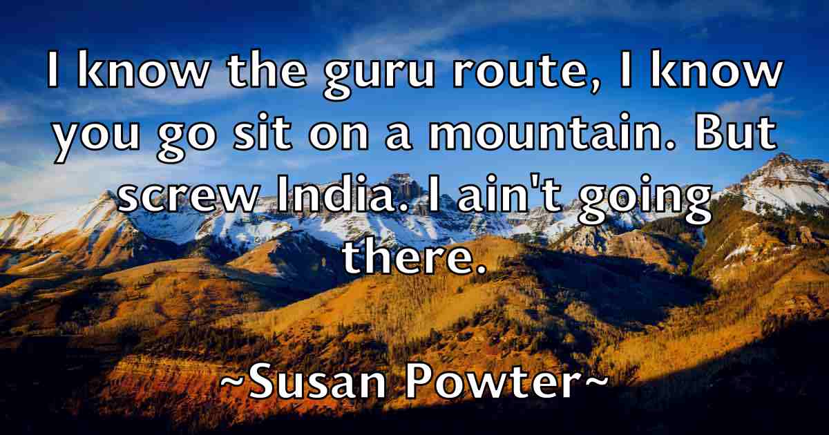 I know the guru route, I know you go sit on a mountain. But screw India. I ain't going there.