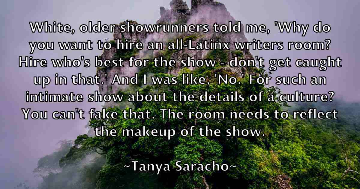White, older showrunners told me, 'Why do you want to hire an all-Latinx writers room? Hire who's best for the show - don't get caught up in that.' And I was like, 'No.' For such an intimate show about the details of a culture? You can't fake that. The room needs to reflect the makeup of the show.